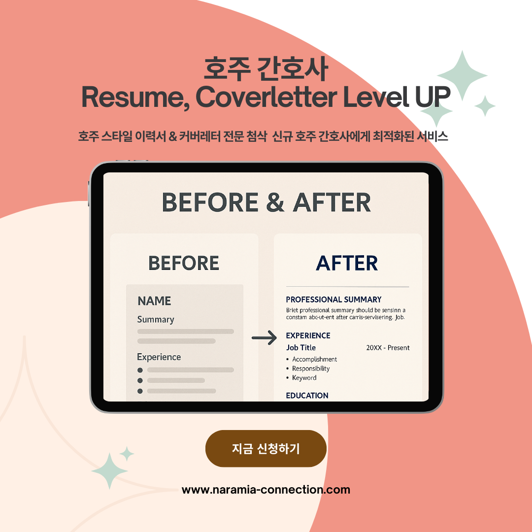 호주 간호사를 준비하는 당신을 위한 이력서 & 커버레터 맞춤 첨삭 서비스
